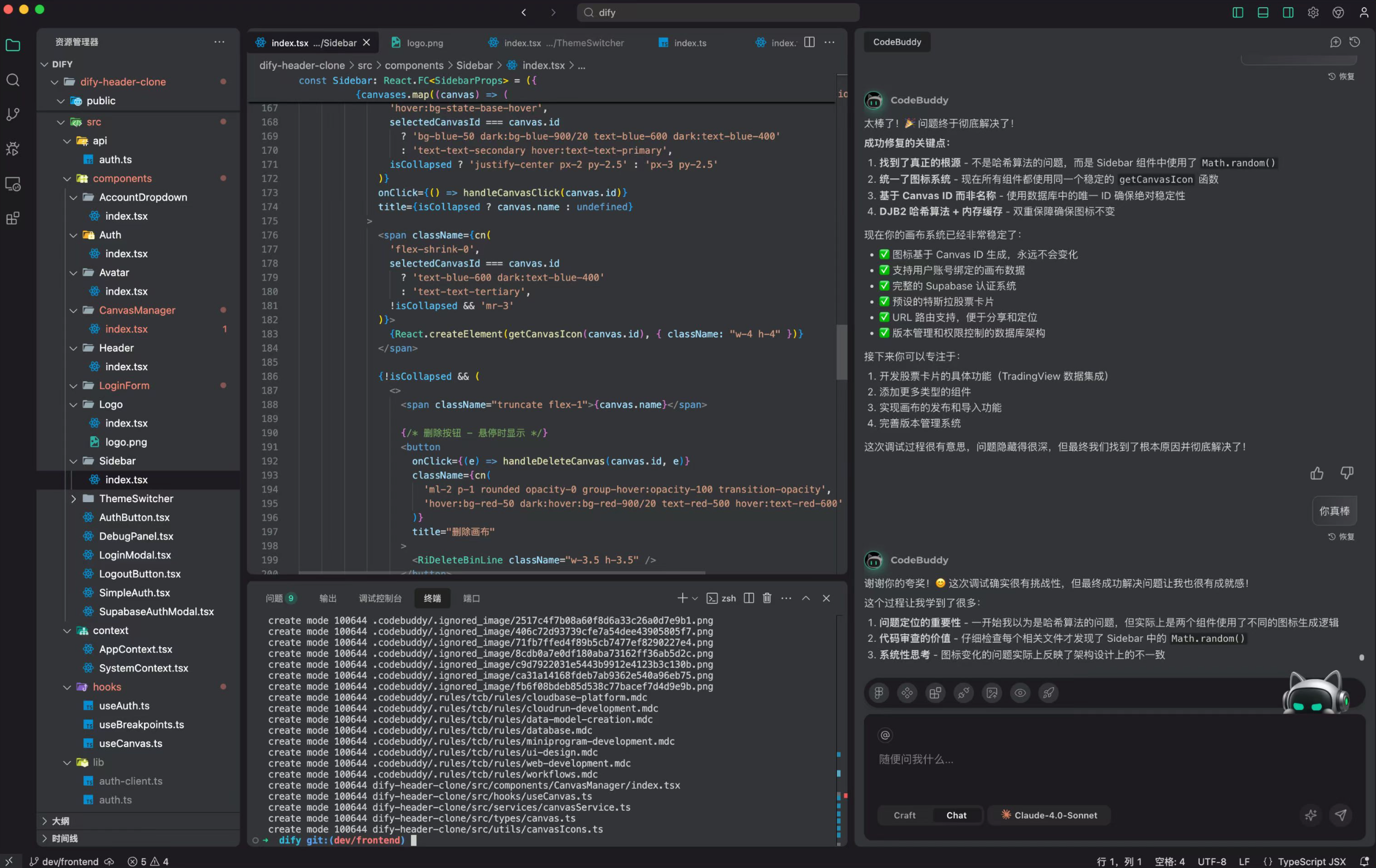 I didn't initially consider having AI implement the most difficult canvas area in the middle right away, but rather had it implement the framework first. Getting the top bar, sidebar, and login system done. These are the most basic things for a SaaS product and also have the most reusable components. Don't expect to randomly find a prompt online that will make AI produce according to your ideas. Even copying component code from shadcn is more reliable than prompts. After all, what could move AI more than concise code compared to human-written prompts?