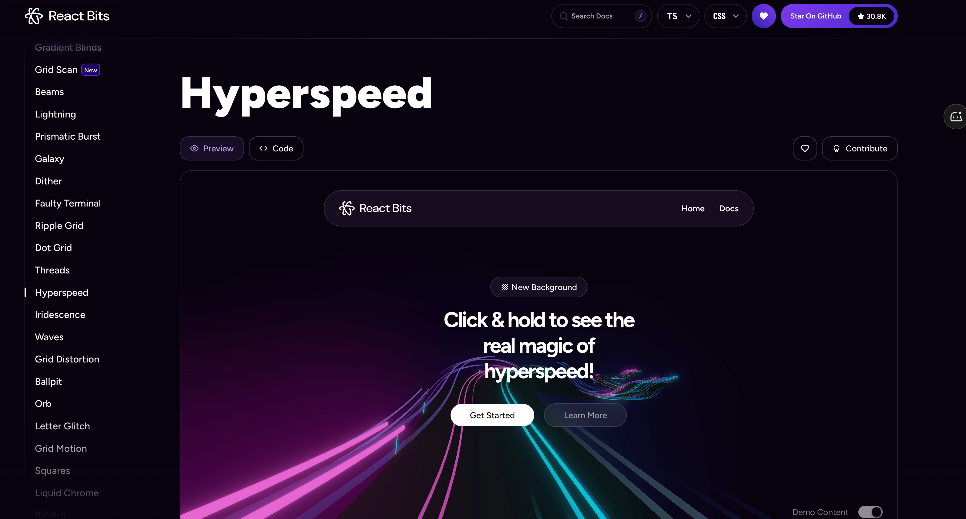 React Bits works great: https://reactbits.dev/backgrounds/hyperspeed